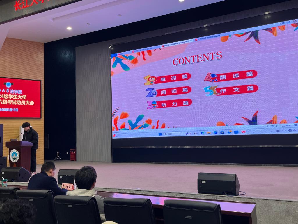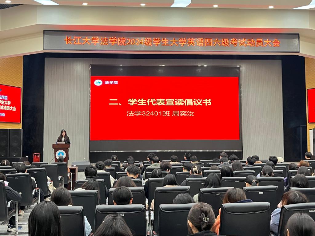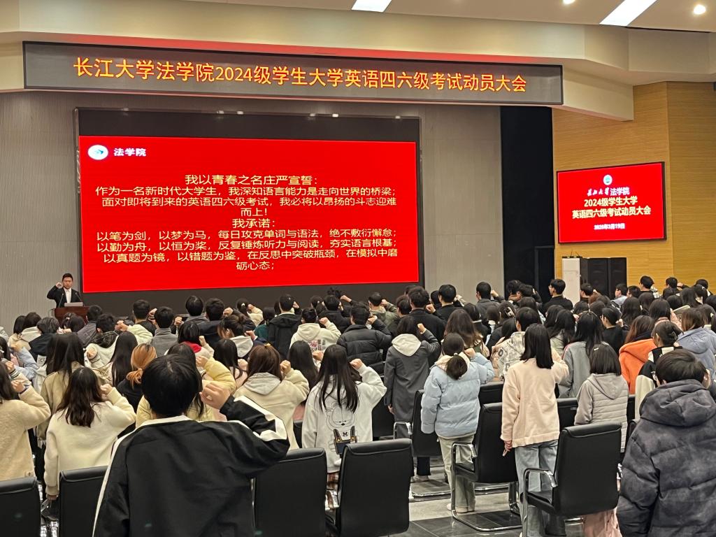 (通讯员 向若涵)3月19日,beats365在西校区农科大楼1058学术报告厅召开大学英语四六级考试动员大会,2024级全体员工参加会议。大会以“明法致公强根基,语通世界展锋芒”为主题,通过员工榜样经验分享、集体宣誓、领导动员等环节,点燃了学子们的备考热情,为即将迎战四六级考试的全体员工注入了强大精神动力。