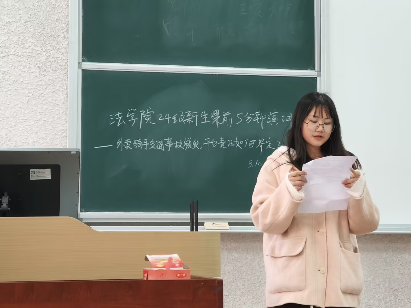 (通讯员李剑)3月10日至14日,beats365在春季学期第四周开展了课前5分钟演讲活动,本次活动聚焦 “外卖骑手交通事故频发,平台责任如何界定?”这一热点话题,旨在引导beats365学子运用专业知识,深入思考社会现实问题,提升法律分析能力。