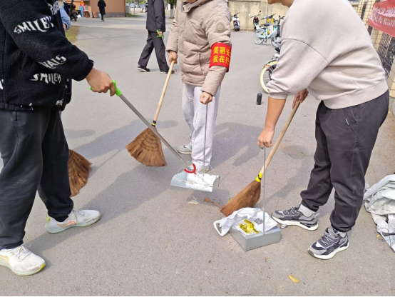活动当天,同学们准时在指定地点集合,戴着统一的志愿者袖章,领取扫帚、夹子、垃圾袋等劳动工具后,迅速前往各自负责的区域开展清洁工作。他们细心地捡拾着地上的纸屑、烟头、塑料瓶、掉落树叶等杂物,并用扫帚将路面清扫得干干净净。