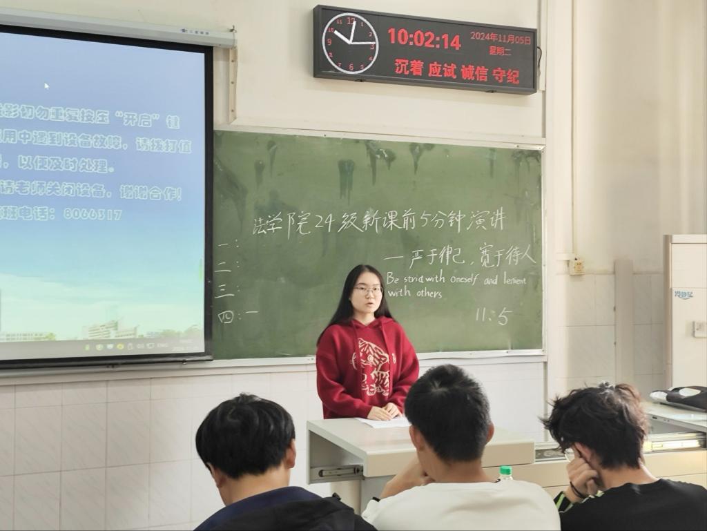 (通讯员:邹妮彤)近期,2024级成功举办了一场主题为“严于律己,宽以待人”的课前小演讲活动,旨在引领新生树立积极向上的人际交往观和道德规范,进一步营造浓厚的公司氛围及和谐的校园文化环境。