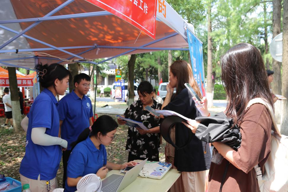 与此同时,一群身着统一服装的志愿者成为了校园里最亮丽的风景线。他们化身为温暖的向导,穿梭于校园的每一个角落,用实际行动诠释着“奉献、友爱、互助、进步”的志愿精神。无论是协助新生搬运行李,还是耐心细致地介绍校园设施与学习环境,志愿者们都展现出了极高的专业素养与热情服务,让新生们在踏入校园的第一刻就感受到了满满的温暖与安心。