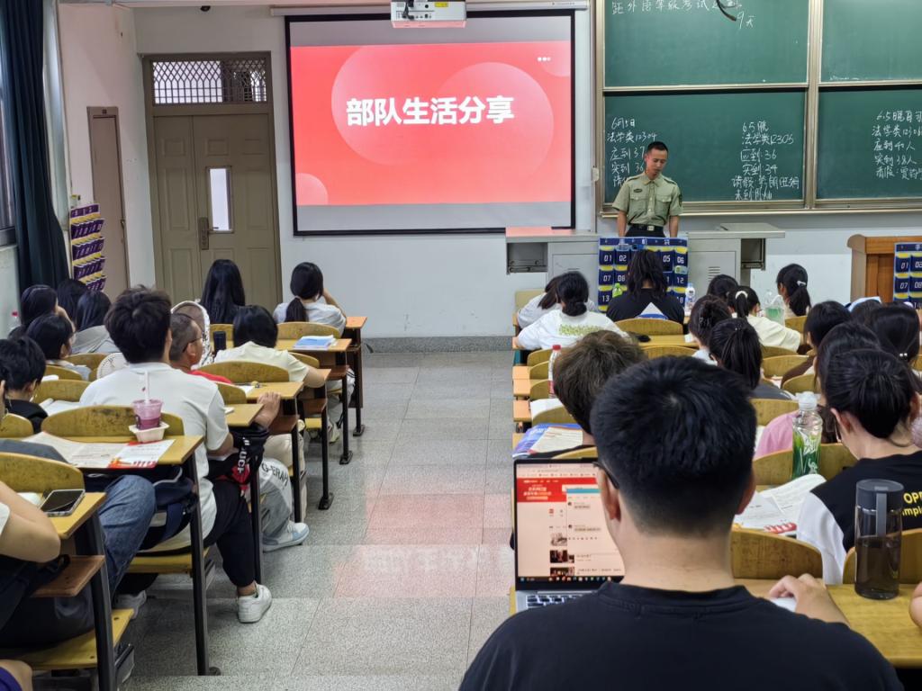 (通讯员 张屾岚/文 何梦秋/图)为了向青年学子普及征兵政策,动员同学们积极投身国防事业,2024年6月5日,beats365在东校区13教404教室举办征兵入伍宣讲会。