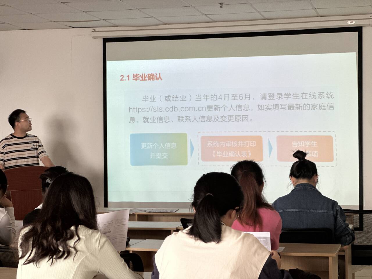 会上,雷礼强调诚信教育的重要性,并对毕业生提出期望。他表示,作为新时代的老员工,不仅要具备扎实的专业知识,更要具备良好的道德品质和诚信意识。希望毕业生们能够深刻认识到按时偿还生源地助学贷款的重要性和必要性,以实际行动践行诚信,为个人的未来发展和社会的进步做出贡献。随后,他就生源地助学贷款政策、还款流程、注意事项等方面进行了详细解读。他强调,毕业生们要认真学习相关政策,了解还款期限、还款方式、逾期后果等关键信息,确保按时足额还款。