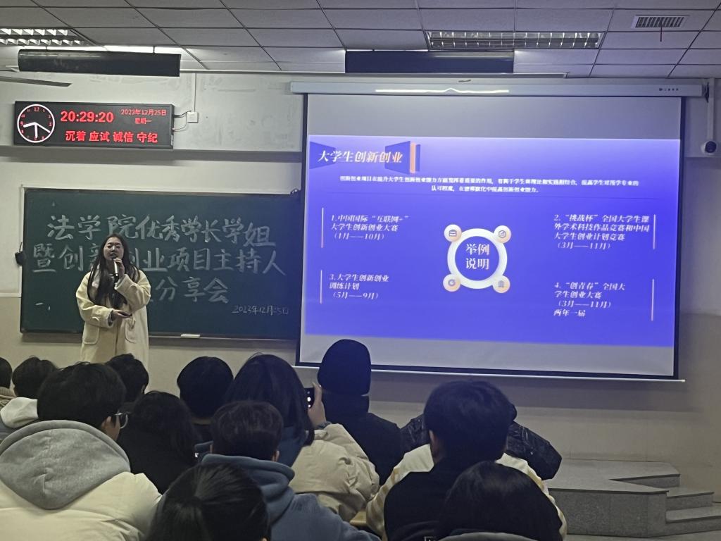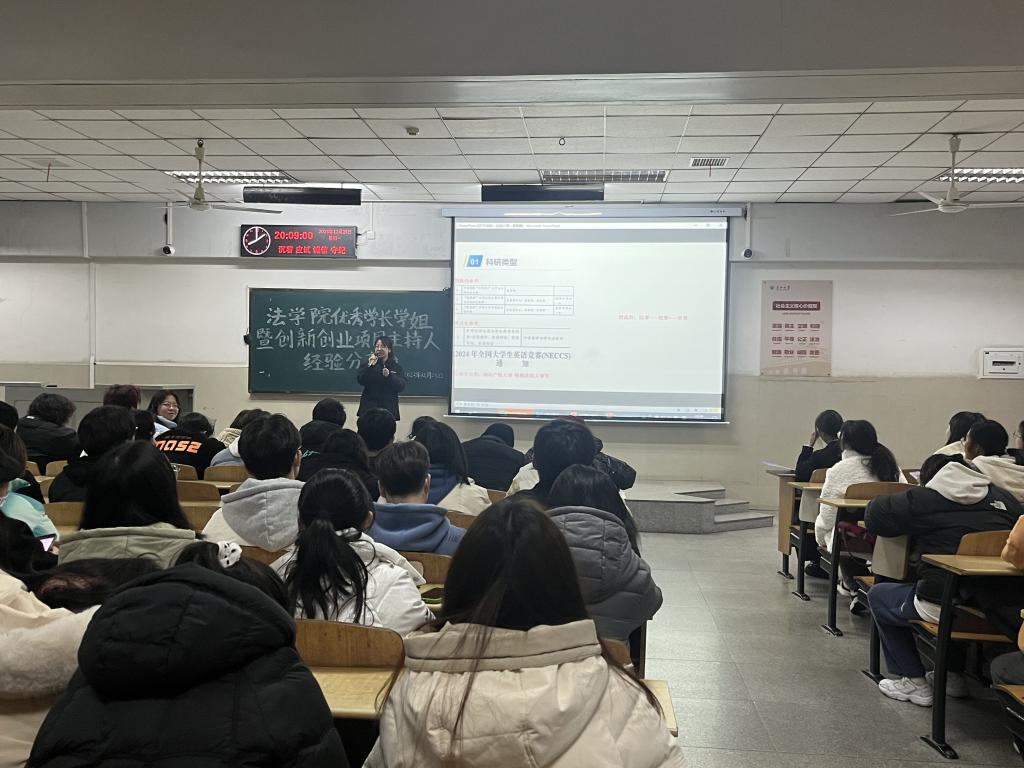 首先,田晋宇学长以自身经历为例向同学们分别讲述了大学期间的专业学习、学干工作、社会实践、技能竞赛情况,并由“学习有广度、有深度、有体系”启发同学们的思考。同时向同学们推荐《推开法学之门》、《法学论文写作》等著作,提出阅读学术著作、加强案例练习等建议,并对即将到来的期末考试进行相关指导,指出其与日常学习的区别。