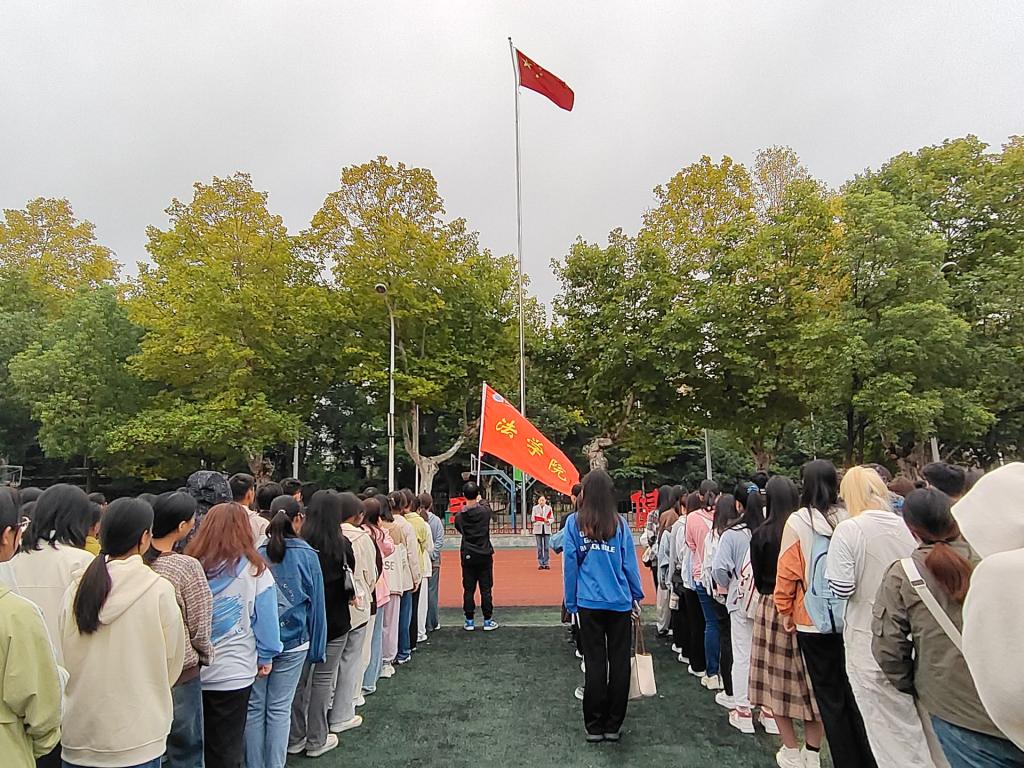 本次升旗仪式的主题为“庆国庆迎中秋爱国主义教育”,由法学12202班曹星怡同学主持。员工代表法学类12303班田雅琪以《赓续长大精神,淬炼国防新火》为题目在国旗下发表爱国主义演讲,“困心衡虑,正是磨砺英雄,玉汝于成。”她呼吁同学们将小我融入大我,将个人奋斗融入强国建设中,赓续长大精神,淬炼时代新火。季节更换,佳节将至,盛文军辅导员也对同学们进行了安全教育,嘱咐同学们对安全问题引起重视。