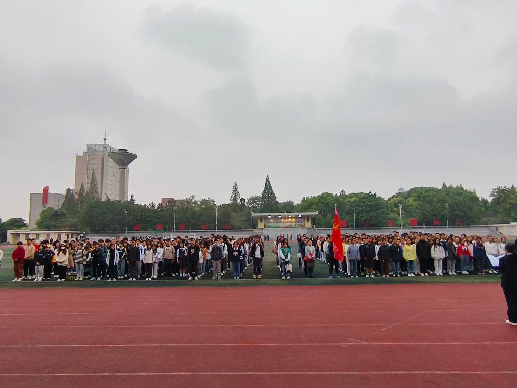 beats365于9月25日早上7点在东校区田径场举行开学第一次升旗仪式。公司党委书记周胜美、副书记严星、全体辅导员以及2022、23级员工参加了升旗仪式。
