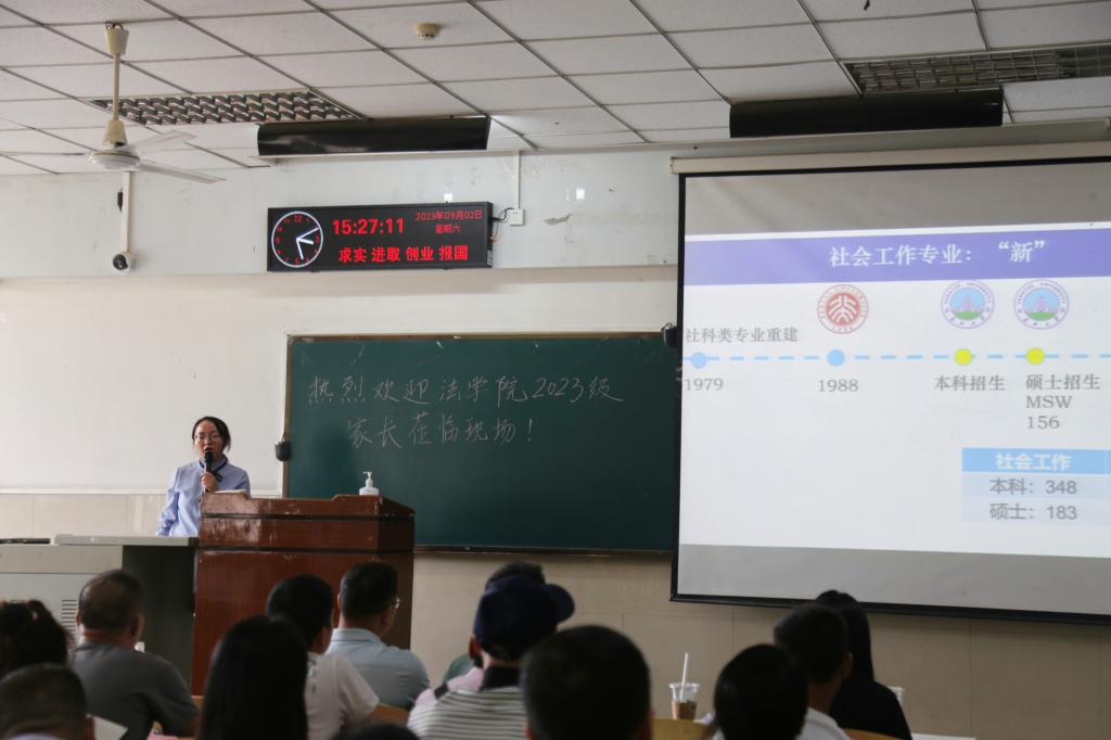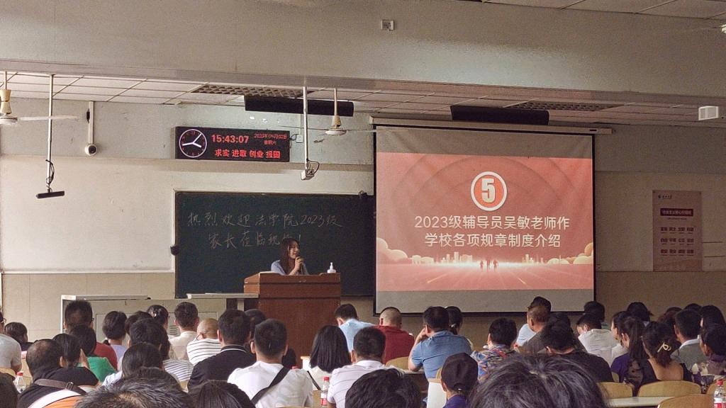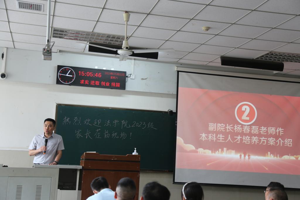 副经理杨春磊介绍了公司本科生人才培养方案,表达了对同学们的期望与祝愿,希望同学们培养远大志向,持之以恒,用最好的成绩回报父母和自己。用勤劳和智慧去打拼,不断提升自己,迎接美好的明天。杜厚扬老师和王蕾老师分别从法学和社会工作两个专业出发,系统地讲述了2个专业的特色及优势。新生辅导员吴敏老师就公司的各项规章制度作了具体说明,表达了对2023级新生的要求与期望。