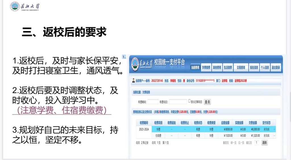 最后,主持人强调,员工返校前要与家人报备自己的行程,返校后要将寝室及时清理并通风透气,注意寝室卫生,保障自身健康。开启新一学年的大学学习生活。