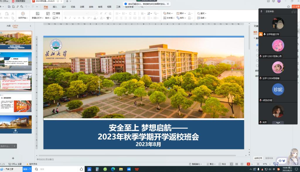 2023年秋季开学临近,公司研究生与本科生各班级通过线上的方式召开了开学前的安全班会,各班班主任主持班会,全体员工参加。