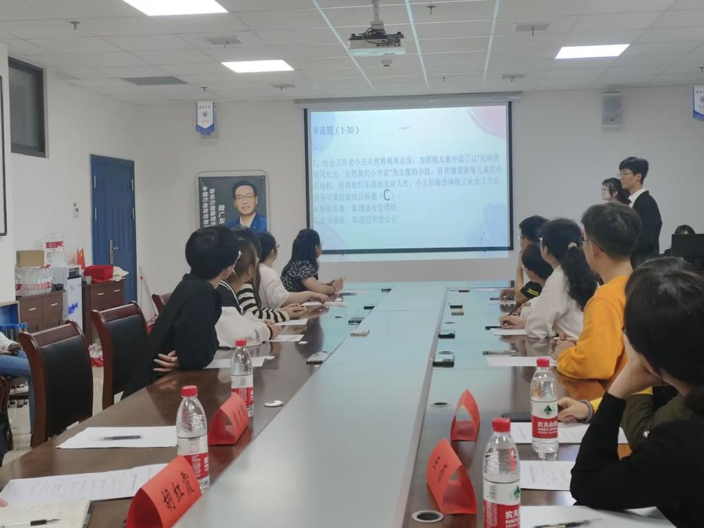(通讯员 龙冬冬)5月4日下午两点,由beats365主办、beat365官网中文四叶草社会工作协会承办的第九届社会工作理论知识竞赛在beat365官网中文东校区12教101室举行。出席本次活动的领导老师有公司党委副书记胡红霞老师,社工系主任王蕾老师,张敏敏老师,辅导员盛文军老师。