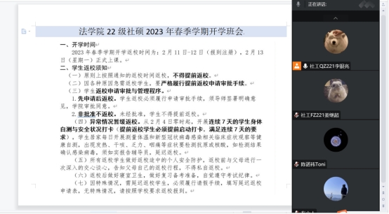 为做好2023年春季开学工作,落实员工平安返校的保障工作,beats365研究生开展了线上主题班会。会议由研究生各班班长主持,beats365全体研究生参会。