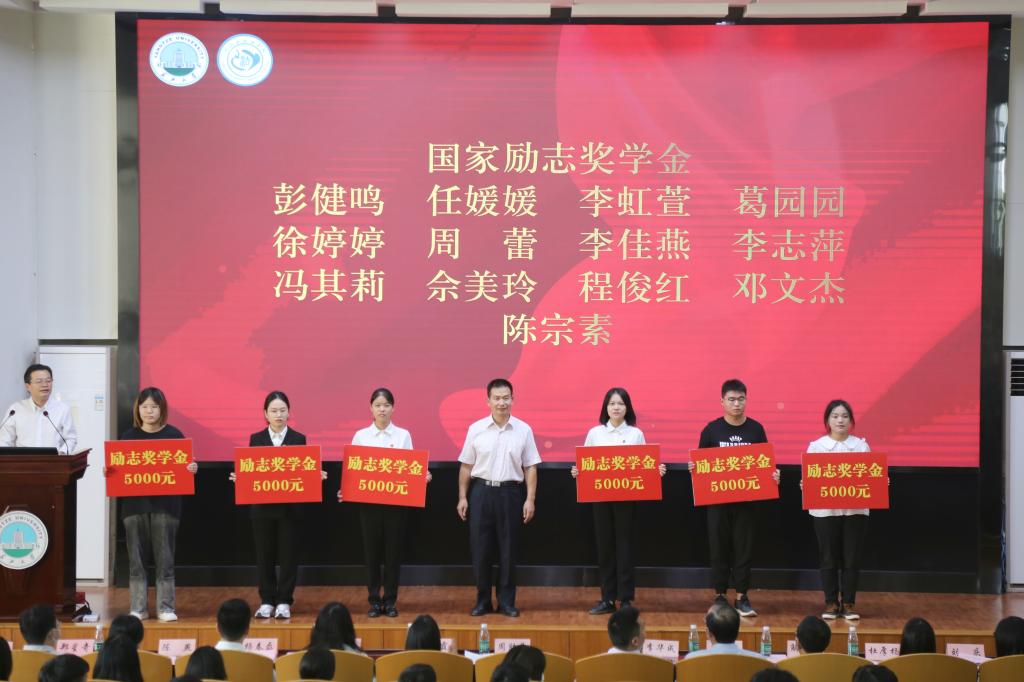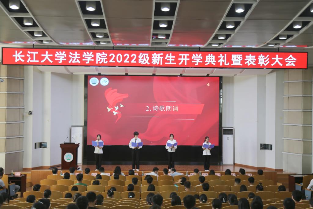 会中,彭泽君老师宣读各项表彰决定,与会领导、老师分别为相关同学颁奖,合影留念。随后本科生新生代表江静、员工代表叶秀进、老生代表赵永琪、研究生新生代表黄采卉及教师代表杨春磊分别进行发言。其中叶秀进先生以视频的方式表达了对两位新生奖学金获得者的祝贺,并结合自身经历,激励法学专业学子,扎实学好专业基础课程,为以后的专业深造、工作打好基础。杨春磊老师鼓励全体同学以立德树人、德法兼修为己任,既要做到仰望星空,同时也要脚踏实地。并期望大家在今后的学习生活中贡献长大智慧、谱写青春华章。