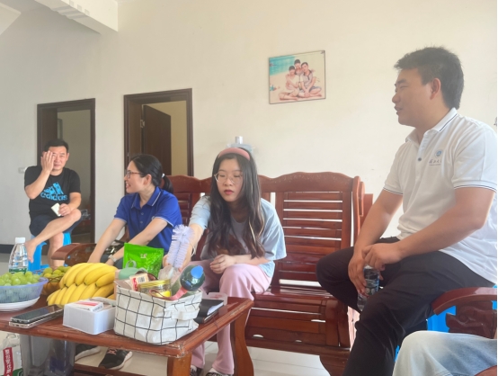 之后分别来到建筑学11901班熊士娇、工管11901班杨心怡、法学12001班赵欣彤家,老师们亲切地与员工及家长进行交谈,关心员工们的家庭情况、生活状况、未来规划、实际困难等,切实为员工们解决实际问题,指导规划未来。