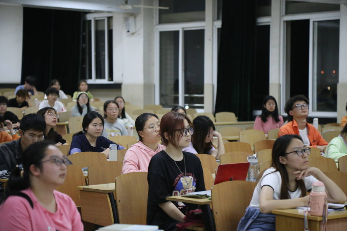 王奕然学姐从英语四级翻译和写作两方面来分享自己的学习经验和写作技巧。在翻译上,鼓励同学们开阔自己的想象,用中文的逻辑思想带入英文翻译之中,使得翻译文章更显流畅与舒缓。在翻译的同时,提倡使用高级词汇,让人耳目一新。在写作上,王奕然学姐分享了自己的经验,将作文化成固定的思维模式,形成自己的作文模板,并保持良好的写作习惯。