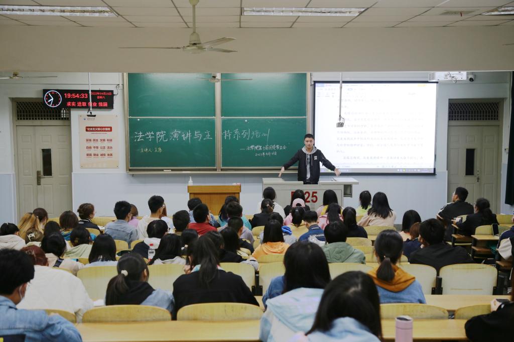 王伟结合自己的演讲经历,向同学们介绍了“演讲是什么”“如何做好演讲”,接着,他分析了演讲中的误区,并分享了他参加百生讲坛活动的经验。王伟强调,“演讲要以内容为王”,写好演讲稿是最基本的,并就撰写演讲稿、制作PPT两方面进行了详细的讲解。