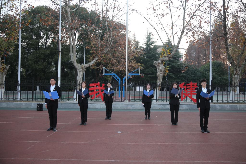 朝阳东升,国旗飘扬,在领誓人的带领下,全体师生共举右拳,面向国旗庄严宣誓,“以青春之我、奋斗之我,为民族复兴铺路架桥,为祖国建设添砖加瓦”,坚定的宣誓声在田径场之上回荡。各院师生代表有序进行横幅签名活动后,本次升旗仪式圆满结束。
