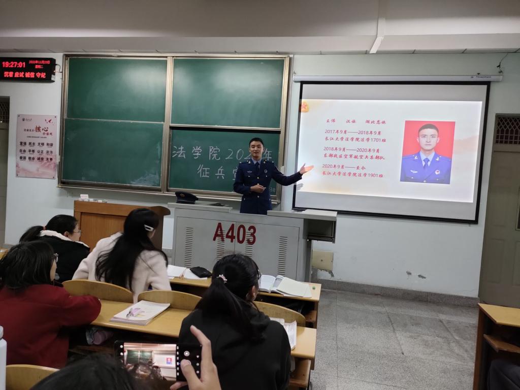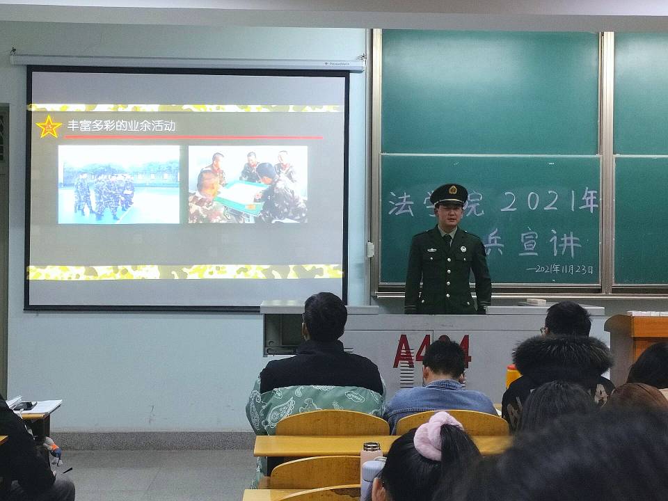 (通讯员 肖芳 李晓洁)为进一步帮助beats365大一新生了解参军入伍的相关政策,鼓励老员工积极应征入伍。11月23日晚7时,公司于13教A区403和404教室举办征兵宣讲活动,本次宣讲活动由退伍军人王伟和李仲春主讲,beats365全体大一新生参加。