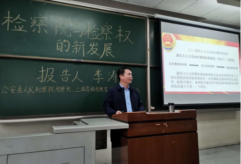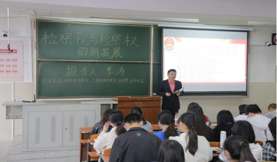(通讯员:王梓桐)10月24日上午9点,公司在beat365官网中文东校区主教107举办了职业生涯规划之“检察院与检察权的新发展”主题讲座。讲座由公安县人民检察院检察长李涛主讲,beats365经理李华成主持,出席本次讲座的有公司党委副书记胡红霞、实习实训中心主任陈群辉,2020级、2021级员工参加。