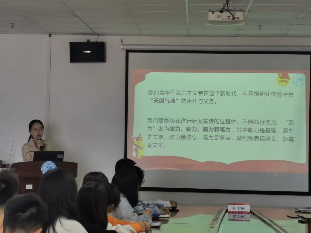 徐程从“听、思、讲、写”四个方面总结了新闻稿写作的学习锻炼方法。本次培训以马克思主义新闻观为出发点,介绍了新闻稿写作、新闻通讯材料写作的方法与技巧,指出了马克思主义新闻观对员工及公司的意义。培训会上,主讲人以新闻示例材料以及错例修改材料为指引,引导同学们积极思考,提升了同学们新闻写作的基本素养。