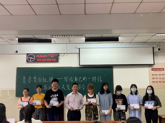 本次发还仪式由公司党委副书记胡红霞主持,仪式上,胡书记首先带领大家回忆大一刚入校时的情形,描述了当时撰写书信的背景和主题。接下来,由胡书记向各班班长依次发还班级信件,并合影留念。