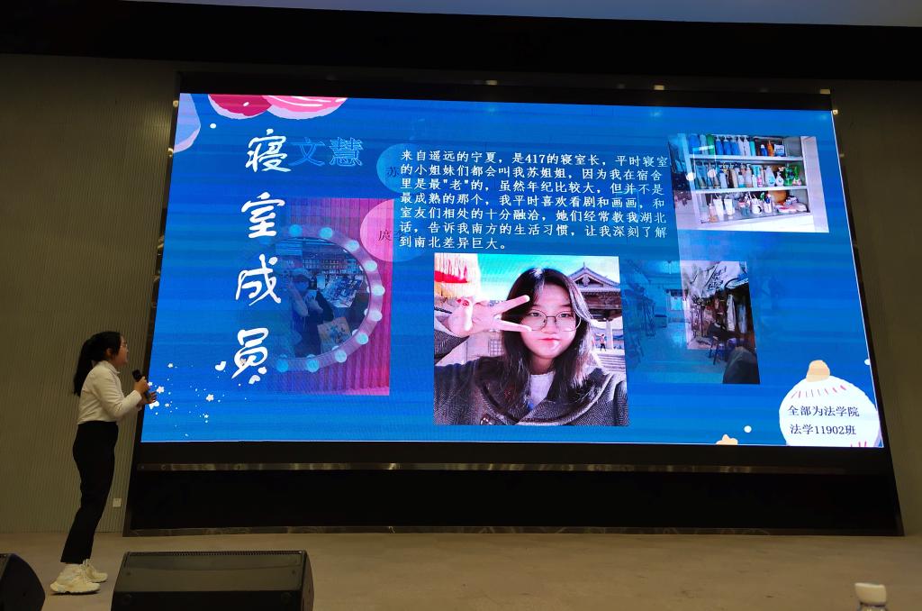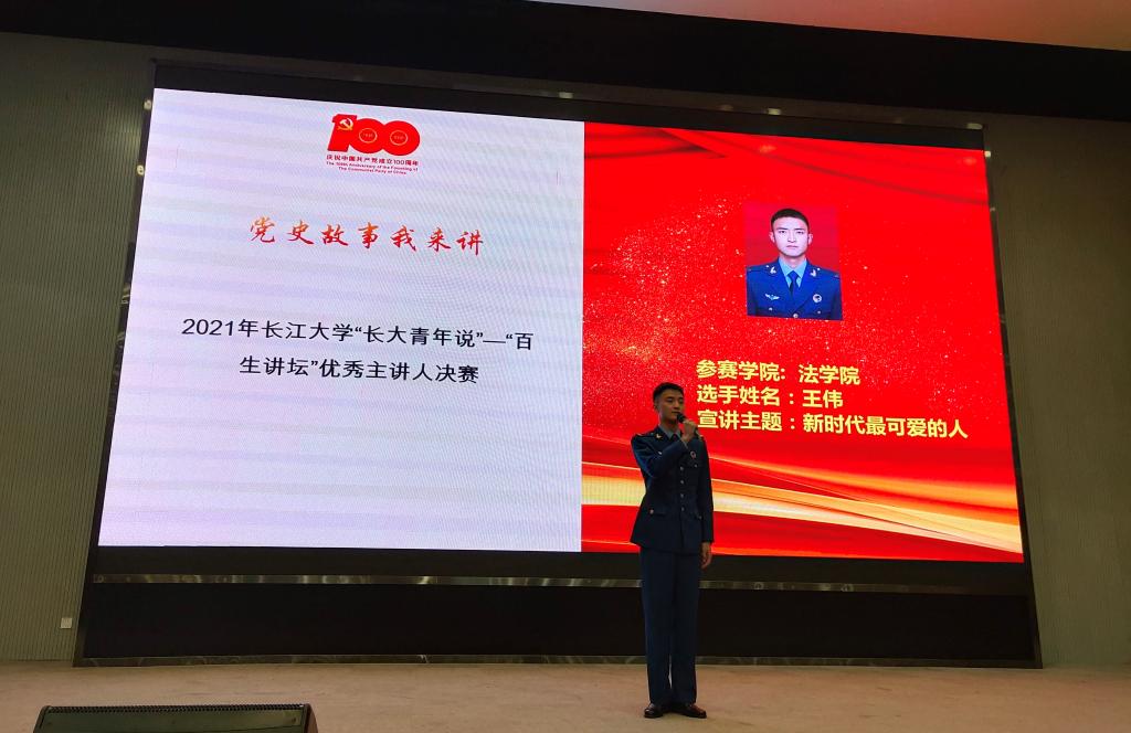 由老员工艺术团带来的开场舞蹈《芒种》,瞬间将现场的气氛点燃。接下来,由公司领导和老师为在本学期举办的百生讲坛暨“党史故事我来讲”、寝室文化节、“五四”系列活动、专业基本功大赛等活动中获奖的同学们一一颁奖。在颁奖过程中,被推选出的典型作品上台进行了展示。法学类32004班胡智豪同学进行了《五四百年青春梦,红色薪火永相传》主题演讲;法学类32005班王晓雅、张砡濛和秦一凡同学朗诵了诗歌《不朽的军魂》;南苑19A417,作为优秀寝室代表进行了寝室文化展示。随后,法学11901班王伟同学带来“长大青年说”——“百生讲坛”优秀主讲人示范宣讲,他以《新时代最可爱的人》为主题,结合自己部队服役的经历讲解新时代的抗美援朝精神,将现场的气氛推向了高潮。听了王伟的讲述,不少同学都流下了感动的泪水。