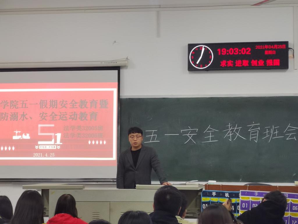 (通讯员:胡智豪)为提高员工自我防范意识,增强员工假期安全意识,公司以班级为单位先后召开“五一”安全教育主题班会。4月25日晚7时,法学类32005、32006班“五一”安全教育班会于西校区7教406教室召开。辅导员盛文军老师参加并主持本次班会。