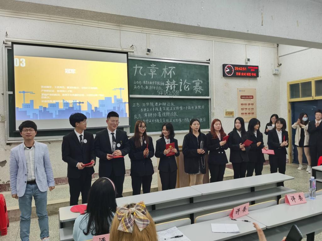 【通讯员 雷瑞婷】4月23日晚20时,公司君和辩论队在西校区参加了第三届“九章杯”辩论赛的决赛。此次辩题为“当非正义手段是实现正义的唯一手段时该不该使用”,我方以正方的身份对战演辩协濯理辩论队,双方准备充分,现场辩论激烈,观众座无虚席。