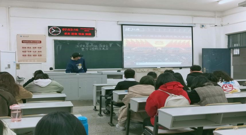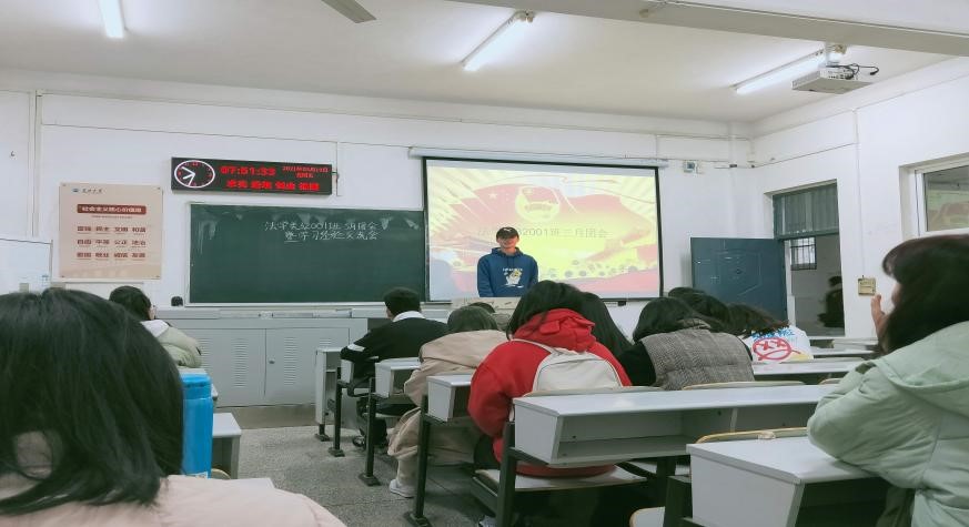 (通讯员:龚晴) 3月19日上午8时,公司法学类32001班在西校区7教106召开3月主题班团会暨学习经验交流会,由班长兼团支书罗浩文主持。