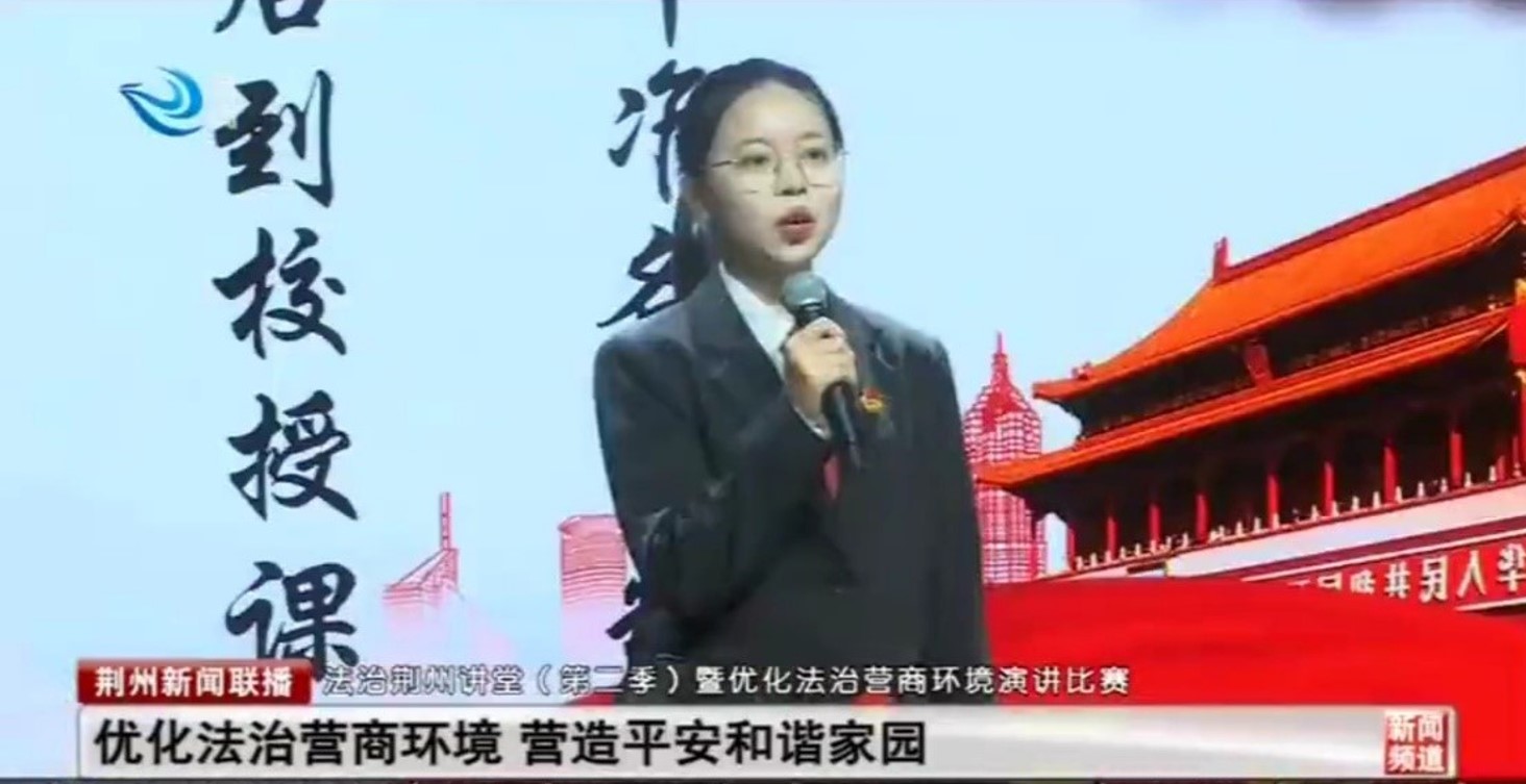本次演讲比赛有来自荆州市检察院、沙市区法院、江陵县公安局、共青团荆州市委和beats365等单位的11名主讲人参赛。徐程同学在《传承法治精神,奉献青春力量》主题演讲中展示了公司在深化平安法治荆州建设,服务和优化荆州法治营商环境中所做的积极工作;她宣传了公司党员教师胡承武、唐飞等的先进事迹,还讲述了公司学子在普法志愿服务等方面的青春故事。