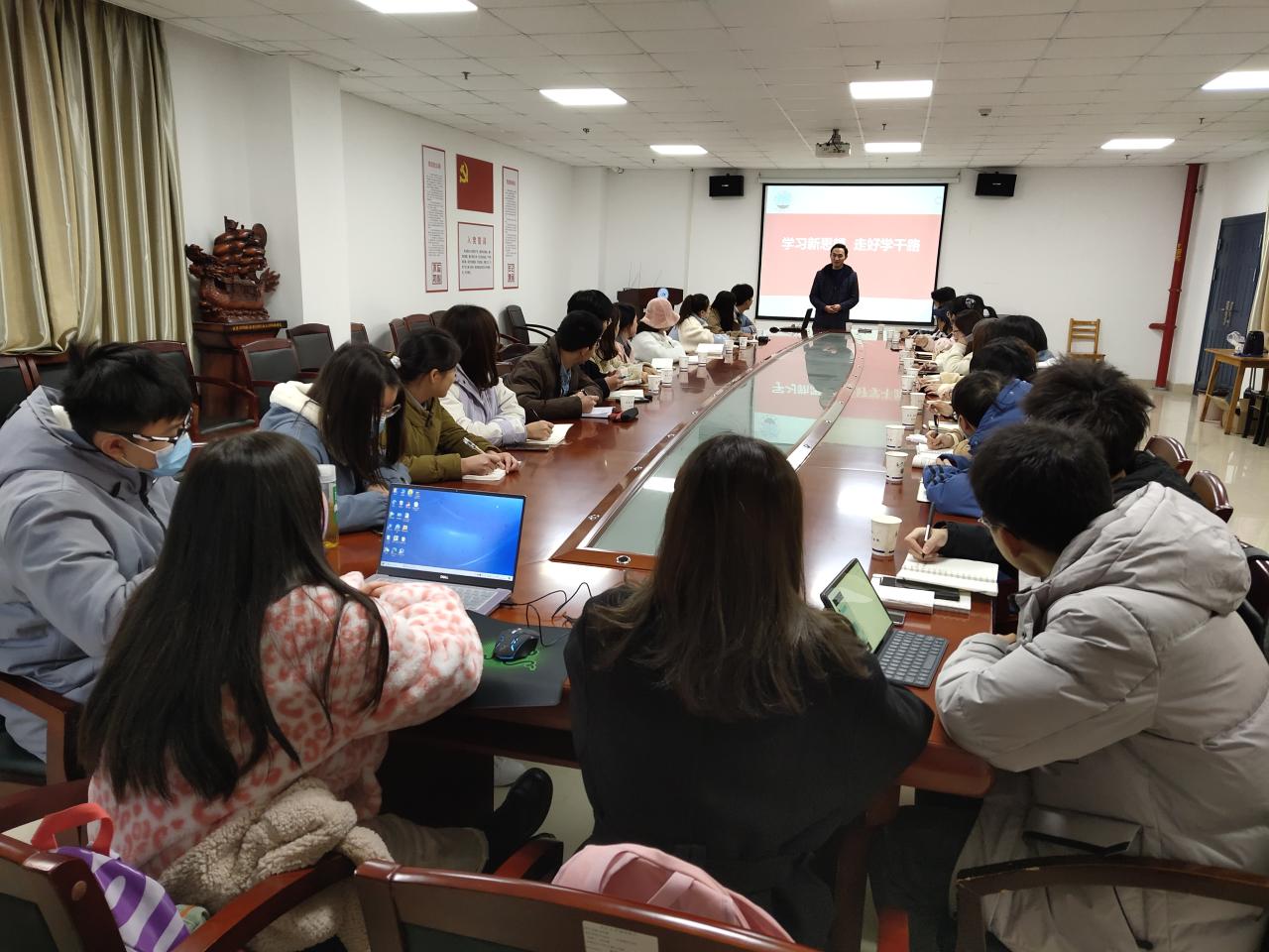 11月28日8:45,在文科大楼1110举行开班仪式,党委副书记胡红霞、辅导员周晓峰和初干班29名学员参加。首先,由胡书记致辞,她指出,希望通过这次培训,培养出一批优秀、高效、亲民的员工干部团队,她呼吁员工干部要时刻铭记“不做员工官,争做员工友”的初心,发挥好带头作用,努力学习,让青春在党和人民最需要的地方绽放绚丽之花。
