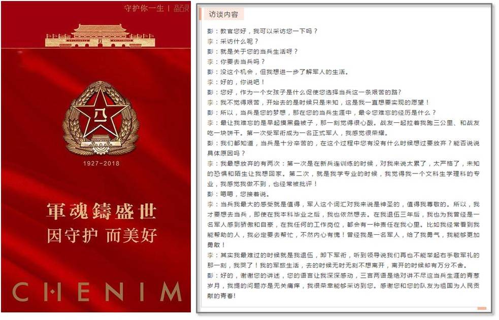 图为志愿者访谈毕业于beat365官网中文的优秀士兵,共述军旅生活。