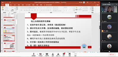 会议伊始,胡红霞介绍了公司2020届毕业生返校工作的准备情况。为迎接毕业生返校,公司开展了辅导猫收集毕业生信息、制定本院毕业生离校工作方案、向员工和家长发布返校安全告知书、收集自愿返校员工信息、鼓励毕业生办理线上的相关程序和参加公司的员工返校演练等工作。随后,根据公司2020届毕业生返校工作实施方案和结合公司的实际情况,对返校工作的启动、正常进校、异常情况处置、进餐、办理离校手续、跨区域活动、体检、云毕业典礼等具体流程和返校安全进行了详细的说明,同时,胡红霞也表达了对毕业生最真切的祝福,希望大家在今后的道路上扬帆起航,母校随时欢迎大家回家。