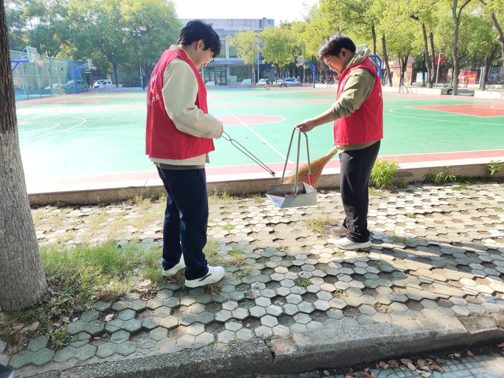 劳动现场,同学们身着统一服装、佩戴志愿者袖章,手持清洁工具迅速投入工作,阳光映照下的身影充满青春活力。在校园蜿蜒的小径上,大家弯腰清扫落叶、纸屑等杂物,不放过任何一处卫生死角,让原本整洁的道路更添一份清爽;在绿意盎然的花坛边缘,同学们蹲下身来,细心捡拾藏匿在草丛中的烟头、塑料碎片,用双手守护绿植的纯净,让校园景致愈发清新;在人来人往的人行道上,大家手持垃圾钳,认真排查角落缝隙里的垃圾,用细致行动为校园环境 “提亮增色”。整个劳动过程中,各小组分工协作、相互配合,默契十足的身影成为校园里一道靓丽的风景线。
