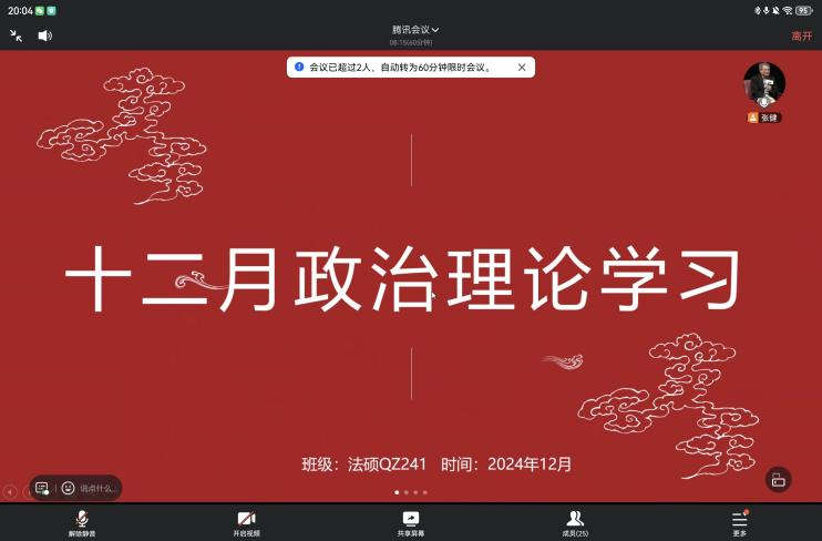 (通讯员 杨绚清)为深入学习贯彻习近平新时代中国特色社会主义思想,切实增强研究生群体的“四个意识”、坚定“四个自信”、做到“两个维护”,持续提升beats365研究生的政治理论素养与思想觉悟,深刻领会党的二十大精神的核心要义与实践要求,12月25日晚20:00,beats365研究生各班级以线上形式成功举办十二月政治理论学习班会。全体班级成员积极响应、踊跃参与,共同完成了一场内容充实、意义深远的理论学习之旅。
