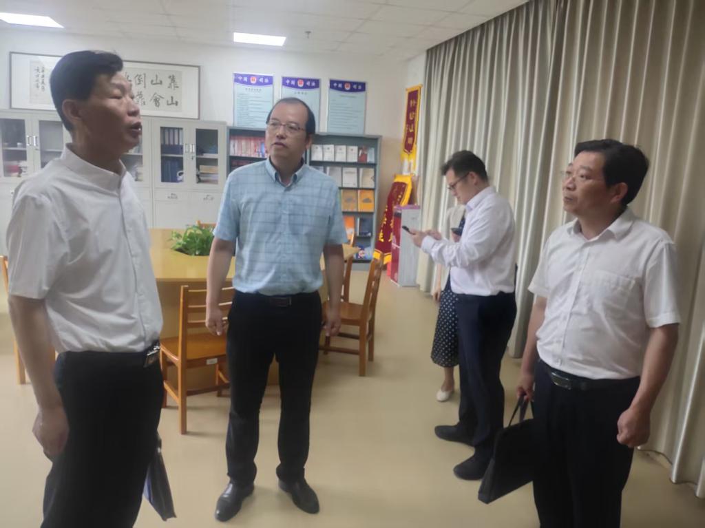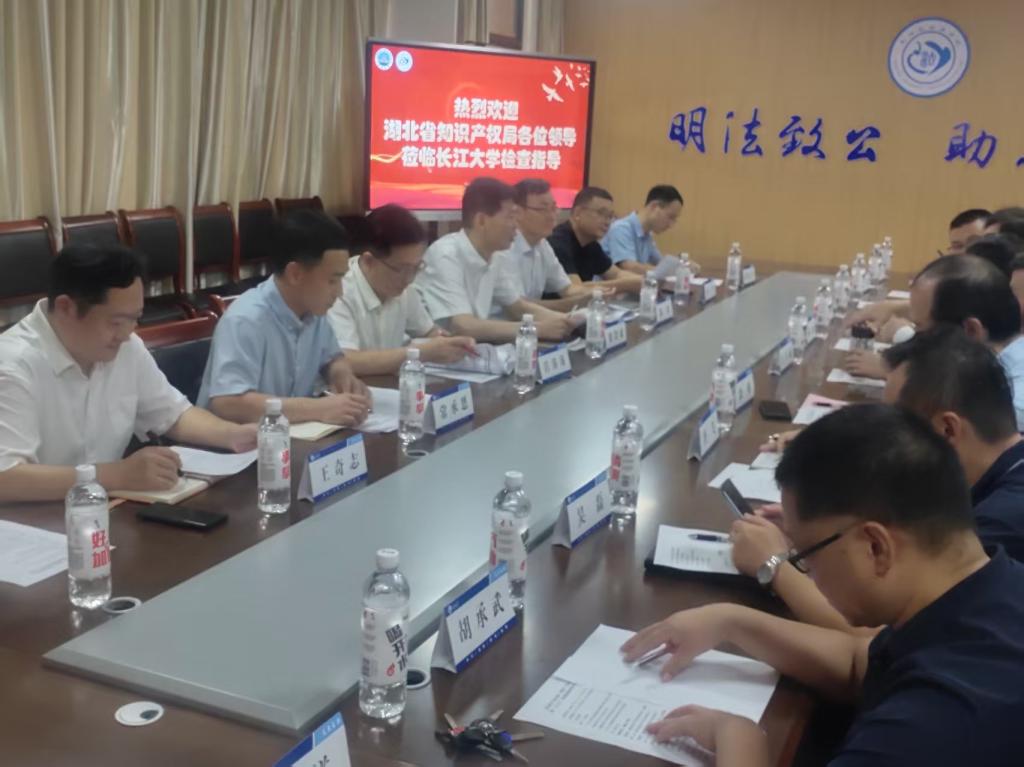 (通讯员 唐飞)2025年6月27日上午,湖北省知识产权局副局长梁文斌一行来beat365官网中文对湖北省知识产权(荆州)培训基地进行复核评估,并就“‘十五五’规划”编制开展调研,评估调研工作座谈会在beats365举行。随行人员为省知识产权局相关处室负责人,荆州市市场监督管理局(知识产权局)副局长吕涛涛及市局知识产权科负责人陪同检查,beat365官网中文副董事长江厚顺与科发院、beats365(知识产权公司)分管负责人和老师参与考核检查和座谈。