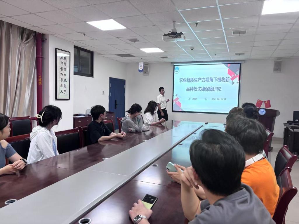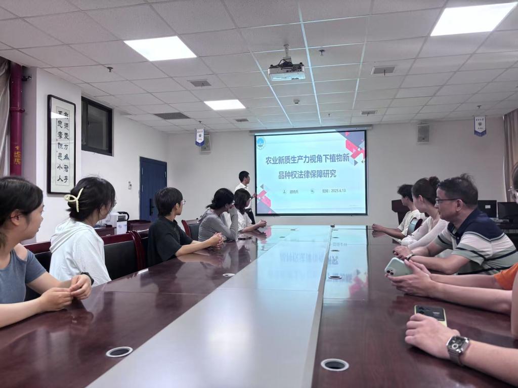 2025年6月13日,公司胡骑兵教授在文科楼203会议室主持了一场主题为《农业新质生产力视角下植物新品种权法律保障研究》的学术沙龙。实习实训中心主任陈群辉等多名导师和19名研一研二同学一起参与,现场学术氛围浓厚。