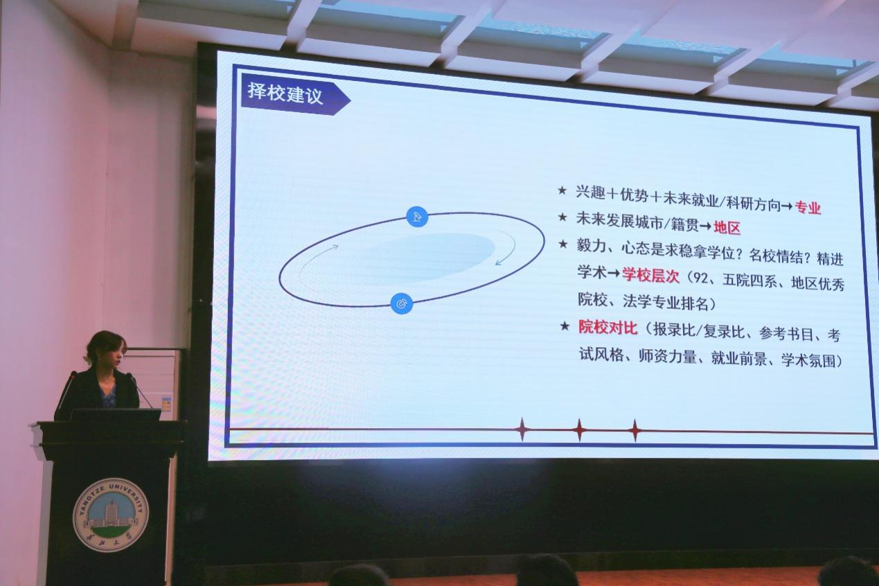最后,邓茗芳、李婷婷、黄颂洋三名同学结合自身经历分享了考研经验。他们都强调择校的重要性,认为要紧紧围绕个人兴趣、职业规划来择校。如邓茗芳以报考公司就业优势与报录比进行数据分析,最终确定考研公司,李婷婷则通过官网精准筛选院校考情等。另外,真题与备考期间的健康管理同样重要。考研之路非常辛苦,他们建议学弟学妹们“坚持到最后一刻,用行动化解焦虑”。