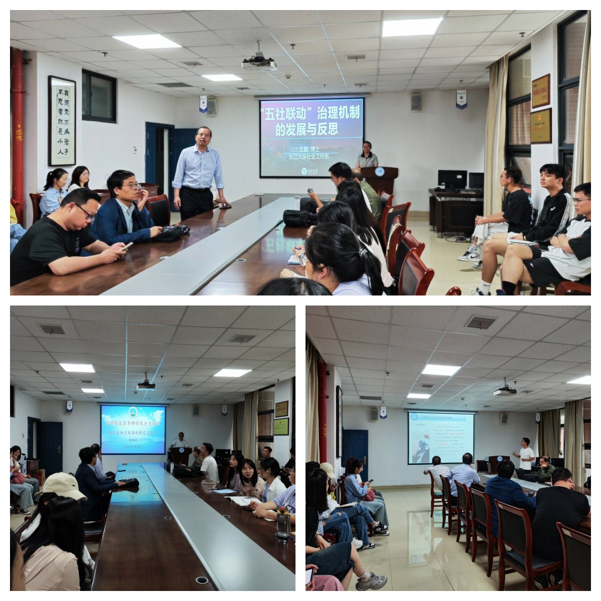 活动中,五位导师的分享既涵盖法学理论前沿,又紧扣社会治理实践,引发在场师生的广泛共鸣。在自由讨论环节,研究生们结合专业领域积极提问,导师们逐一回应并展开延伸探讨。围绕“五社联动机制如何平衡行政力量与社会参与”“未成年人保护中法律与道德的关系”等议题,现场观点交锋不断,充分体现了beats365师生“以问题为导向”的学术追求。