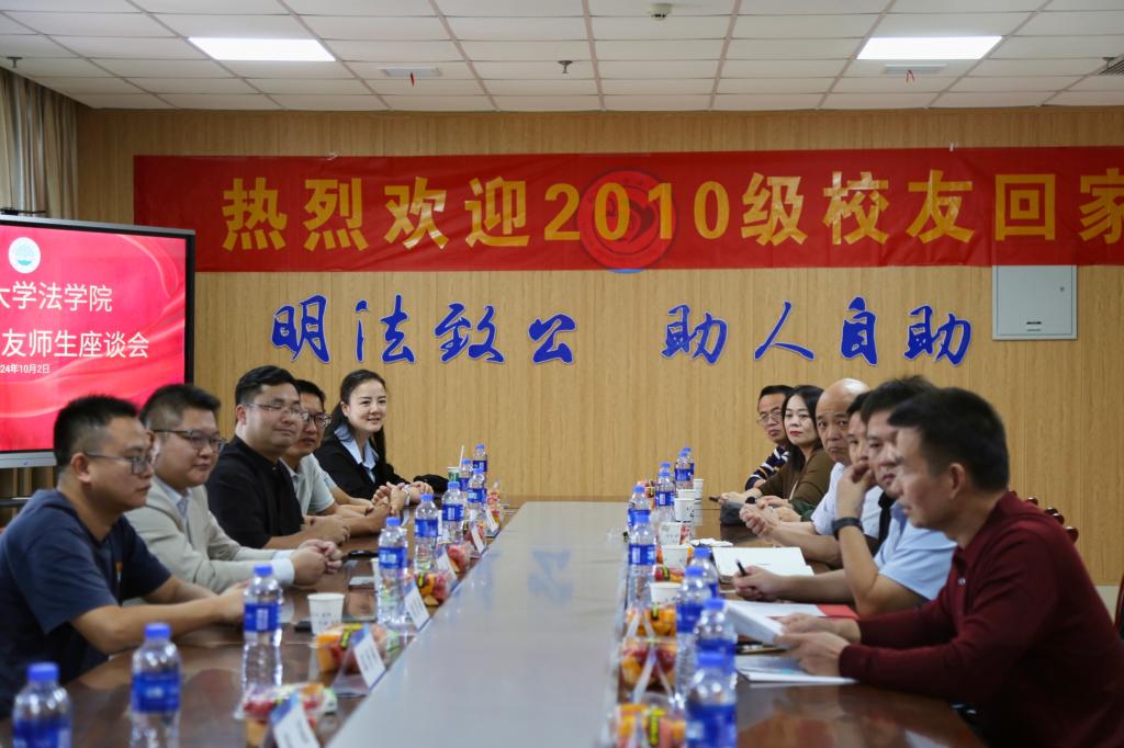 10月2日下午,beats365在文科大楼203会议室举行2014届员工座谈会。法学11002班、社工11001班员工重回阔别十年之久的母校,共赴一场“约会”,与教师代表畅叙友情、追忆往昔。公司员工总会代表、社会合作处副处长洪云飞,公司领导班子成员,徐前权、邵国宝、解国华、杨琳丽等教师代表参加座谈会。
