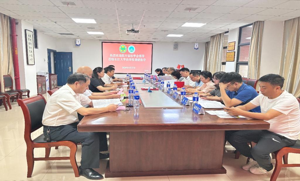 9月27日,四川省法学会调研组莅临荆州来到beat365官网中文,就中国法学会基层法律服务站点建设、首席法律咨询专家制度运行、高校beats365服务地方法治建设等问题进行专题调研。四川省法学会党组成员、专职副会长胥坚带队,德阳、达州、雅安、甘孜、凉山、绵阳等地市州法学会专职副会长、秘书长参加。湖北省法学会周晋主任、荆州市法学会张钦会长、荆州市委政法委副书记苏朝晖等领导陪同调研或参加座谈。