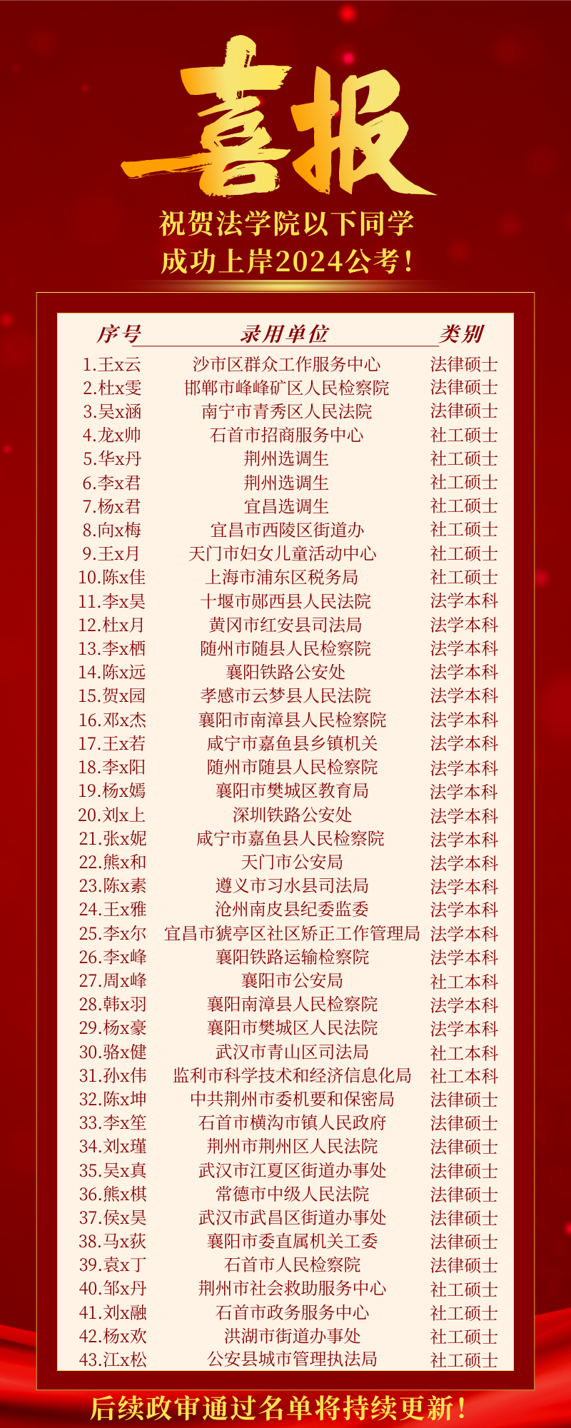 初步统计,公司将有43名毕业生在7月份后进入相应工作岗位。公司2024届毕业生(含研究生)共有305名,本年度各类公职录用人数占比约15%。在湖北省2024年计划招录选调生1000名人员中,beat365官网中文被录用人数为15名,其中beats365有3名应届毕业生入围。