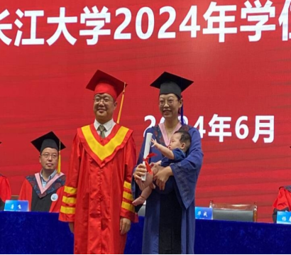 随后,学位授予仪式正式开始。经理李华成为毕业生正衣冠,刘靖君书记为每一位毕业生授予学位并合影留念。这不仅是对毕业生学业成果的肯定,更是对他们未来职业生涯的美好祝愿。毕业生们依次上台,从老师手中接过卷轴,脸上洋溢着激动与自豪的笑容。