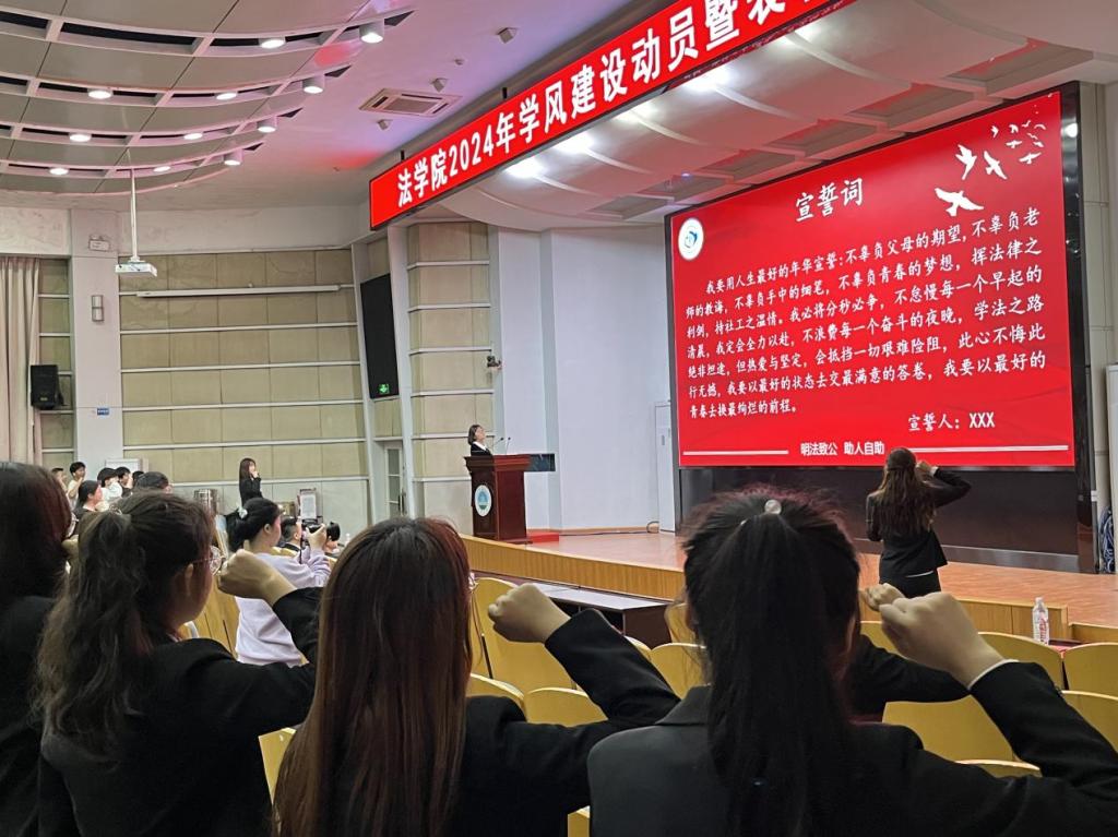 最后,由胡曦禾同学带领全体员工进行宣誓。至此,2024年学风建设动员暨表彰大会圆满结束。