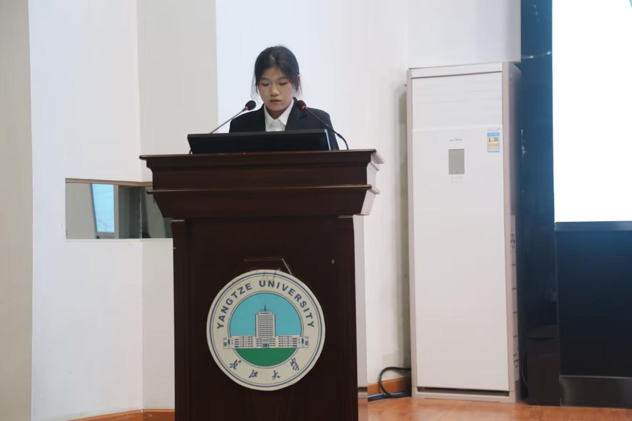 大会第二项,法学类12304班胡秀婷作为员工代表进行英语四级经验分享。她从词汇、听力、阅读、作文四个方面深入浅出地分享了四级备考方法,并建议大家加强真题的练习。