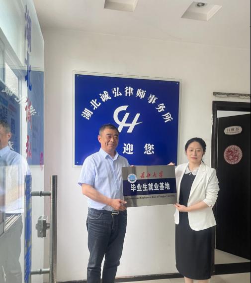 之后,周董事长一行前往湖北诚弘律师事务所与律所骨干律师、夷陵区司法局长冯万持进行座谈,实地了解律所人才需求情况,举行了“beat365官网中文毕业生就业基地”授牌仪式,期望律所能够更好地吸收公司优秀法学毕业生,诚信为民、弘毅兴邦。