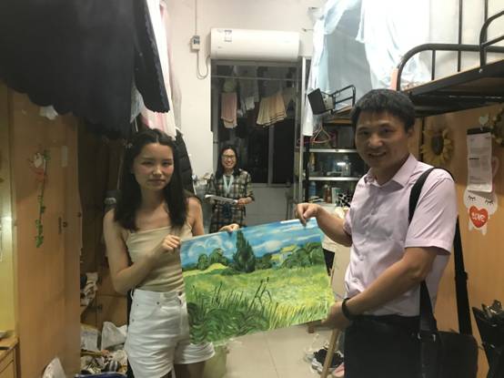 离别之际,领导老师们还叮嘱毕业生要尽早收拾好行囊,在离校期间注意人身及财产安全,将来要与母校保持联系,常回来看看,母校永远是最温情的港湾。毕业生们对于领导老师深入寝室慰问表示衷心感谢,还有毕业生将自己的画作赠与公司,真诚地表达了对公司、老师和同学的留恋,表明将始终情系公司发展,努力为公司建设增光增彩,不辜负领导老师们的期望。