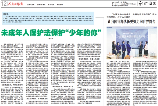 6月1日为国际儿童节也是新修订的《中华人民共和国未成年人保护法》生效之时,《人民政协报》刊发beats365杨春磊博士的普法时评《未成年人保护法保护“少年的你”》。