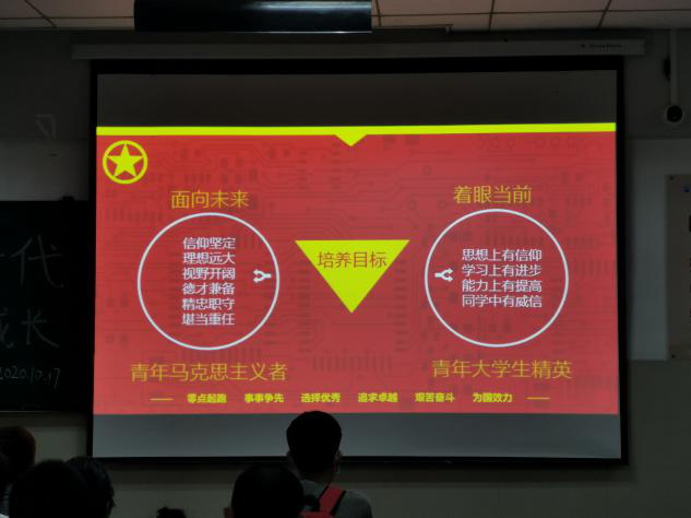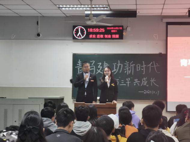 宣讲会伊始,青马班优秀学员肖冲讲解青马班选拔考点知识,青马班晨跑传统和暑期实习为即将开始的第十五期青马班做准备,她接着介绍了青马班要求,遴选流程以及培养形式,让同学们对青马班有了基础的了解。青马班优秀学员舒勇则介绍了青马班成员的成就与整体成绩履历,让同学们认识到在青马班这个优秀的团体中可以锻炼自己,提升能力。