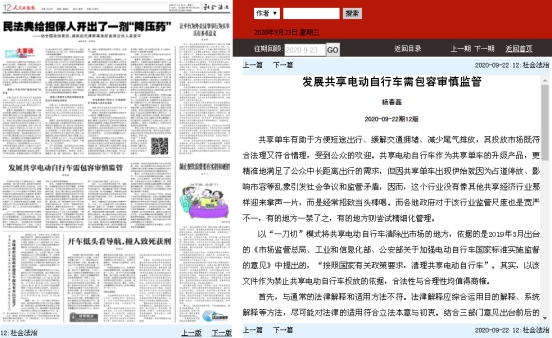9月22日,《人民政协报》第12版刊发beats365杨春磊博士的建言文章《发展共享电动自行车需包容审慎监管》。