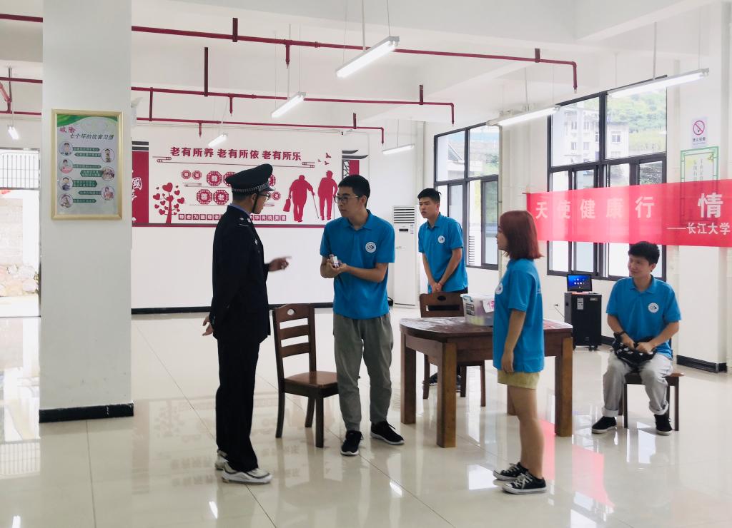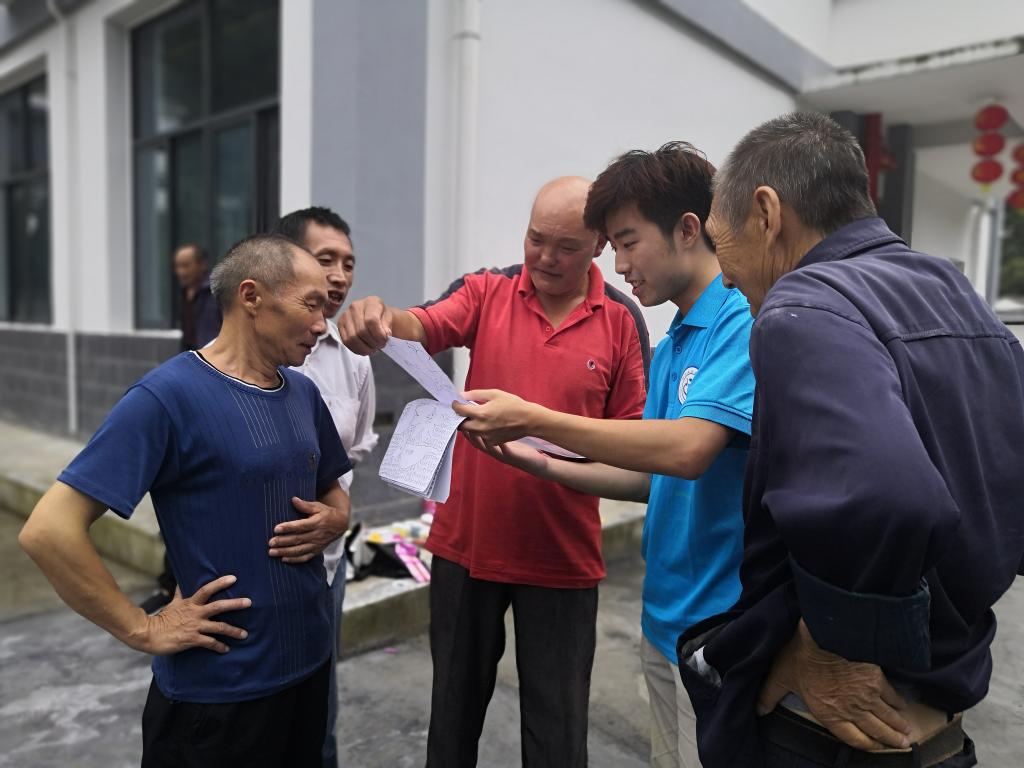 同学们将事先准备好的宣传单和调研手册分发给各位村民,为村民讲解法律常识和扫黑除恶知识,用通俗易懂的语言对于村民提出的疑问进行一一解答。